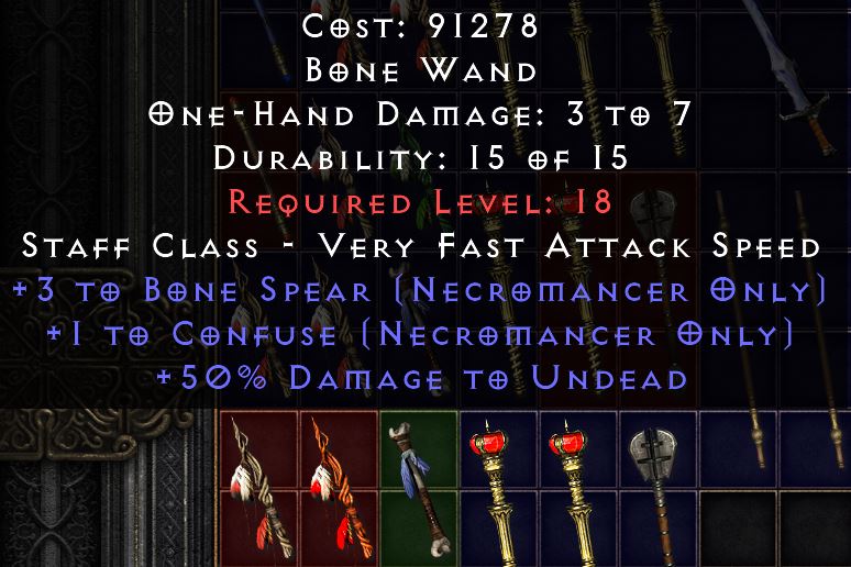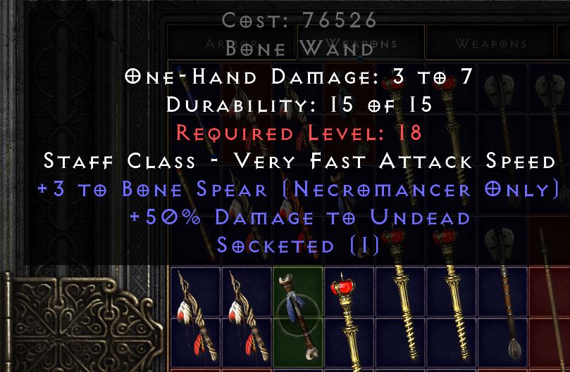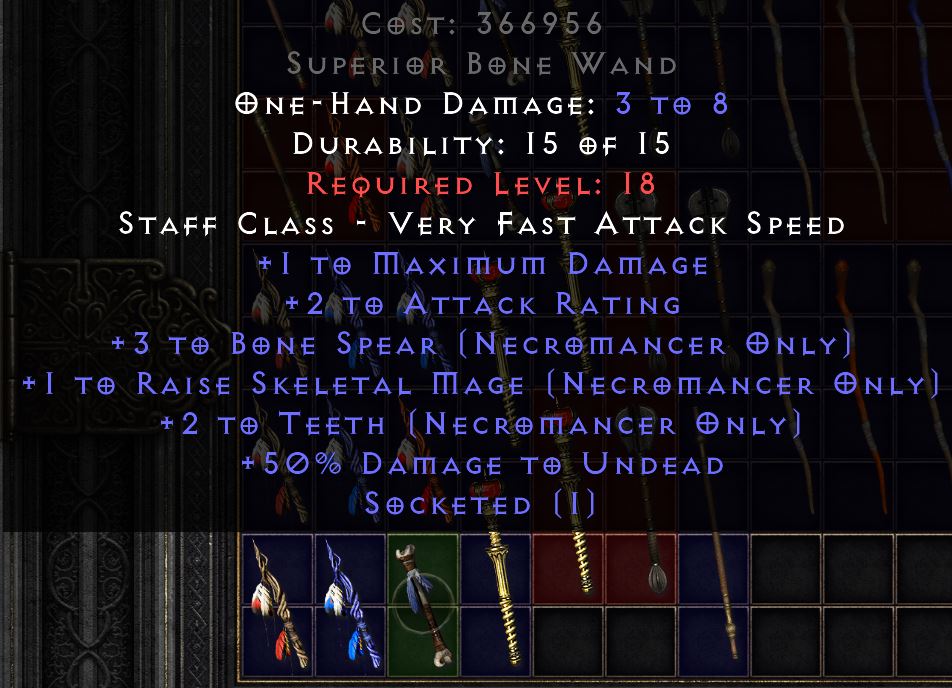 I did everything by the book, level 17, and found this anti-perfect wand. Not only does it have useless skills and stats that increase the cost by a whooping 290,340 gold, but it also has 1 socket, instead of the 2 or 0 needed.